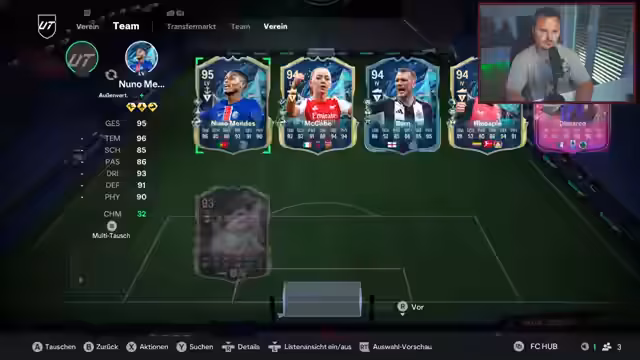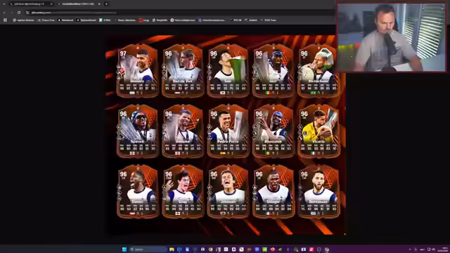 00:42:55Der Streamer präsentiert und analysiert die offiziellen Karten der La Liga TOTS. Er zeigt sich besonders beeindruckt von den Statistiken einiger Spieler wie Pedro Porro und insbesondere von Ardo van der Vaen. Er erläutert, dass die Tottenham-Spieler in normalen Packs verfügbar sein werden und äußert sich zur bereits bekannten Overall-Wertung sowie zu möglichen Playstyles der Karten.