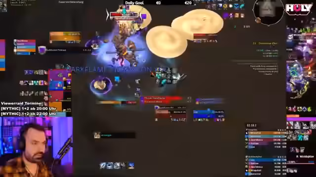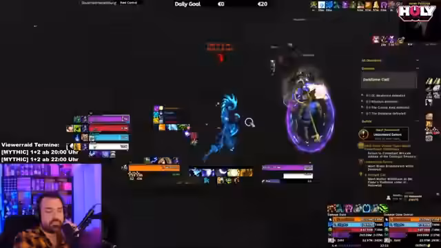 15:08:26Der Streamer stellt die Fähigkeit zur Schau, ohne sein Interface zu spielen, und behauptet, dass er jeden Dungeon so tanken könne, insbesondere mit einem Death Knight. Er startet einen Schlüsseldungeon, schaltet seinen Monitor aus und spielt rein aus dem Gedächtnis. Die Gruppe ist überrascht, und der Streamer muss nach einem Missverständnisse kurz den Monitor wieder einschalten, um seinen Status zu zeigen.