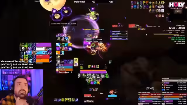 05:29:08Nach Mitternacht beginnen die finalen Phasen der Dungeons. Die Gruppen sind in einem engen Rennen, bei dem jede Sekunde zählt. Das Team der Ziegen, Goated, kämpft gegen Enten, Ducks can fly, um sich einen Platz im Finale zu sichern. Währenddessen analysiert der Streamer die Heilungs- und Schadenswerte und warnt die Spieler vor Todesfällen, da jetzt jeder Tod den Run beendet und die Gesamtzeit beeinflusst. Die Differenz zwischen den Teams liegt bei nur wenigen Sekunden, was zu einer extrem angespannten Atmosphäre führt.
