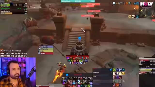 11:50:15Der Streamer beschreibt eine chaotische Dungeon-Situation. Seine zufällige Gruppe agiert völlig koordinationslos. Beispiele sind, dass Kritische Fähigkeiten von Gegnern nicht unterbrochen werden und Adds nicht gebündelt oder gebannt werden. Der Streamer versucht, die Lage mit seinen Tank-Fähigkeiten zu stabilisieren, muss jedoch feststellen, dass die unkoordinierte Vorgehensweise der Gruppe zu einer äußerst schwierigen und gefährlichen Situation führt, in der er ständig eingreifen muss.
