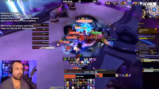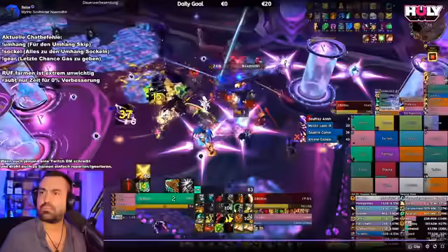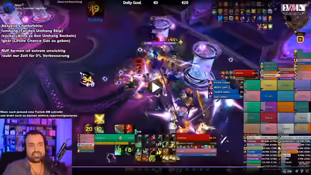 01:51:09Ein Zuschauer meldet ein technisches Problem, bei dem der Streamer mit Störungen konfrontiert ist und seine Schadensanzeige nicht mehr angezeigt wird. Die Lösungsansätze vonseiten des Streamers sind zweigeteilt. Erstens wird die offizielle Blizzard-Einstellung zur Deaktivierung der Spell-Alerts vorgeschlagen. Zweitens wird für ein generelles Problem, wie das störende Textfeld der Talking Heads, der Einsatz von Add-ons wie 'No Talking Head Frame' als pragmatische Lösung empfohlen, um die UI aufzuräumen und die Übersichtlichkeit zu erhöhen.