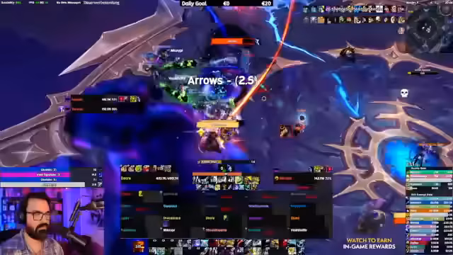 00:00:02Der Stream beginnt mit enthusiastischen Begrüßungen und der Ankündigung, dass der Mythic-Progress mit dem Hunter für Alleria heute im Fokus steht. Nach der Begrüßung der Zuschauer wird der Fokus auf die Vorbereitung für den Dungeon gesetzt. Es wird erklärt, dass der Hunter noch einige Schlüssel für den späteren Raid farmen muss, um das Item-Level zu verbessern, und daher zunächst ein Mythic+ Dungeon absolviert wird. Der Streamer zeigt dabei seinen Charakter, sein Inventar und den aktuellen Fortschritt beim Aufwerten von Gegenständen, um eine bessere Ausrüstung zu erhalten.
