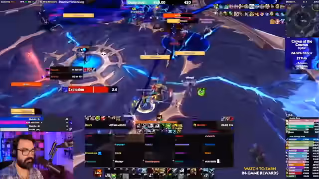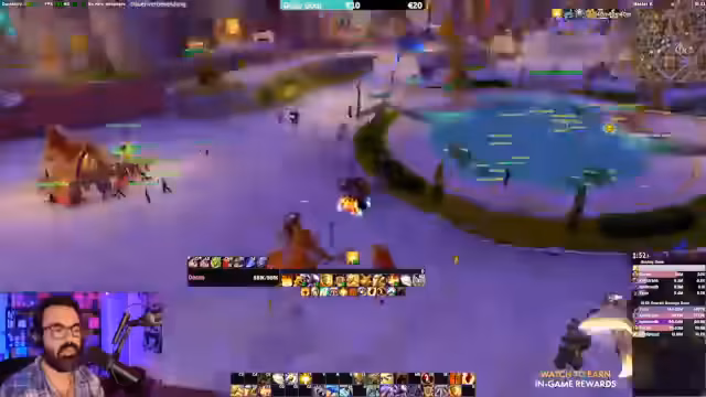 09:32:08Ein technisches Problem tritt bei einem komplexen Makro auf, das Chain Lightning und Chain Heal gleichzeitig ausführen soll. Der Streamer beobachtet ein seltsames Verhalten, bei dem die Fähigkeit ausgelöst wird, obwohl der Mauszeiger nicht über dem Ziel ist. Nach eingehender Fehlersuche stellt er fest, dass das Problem nicht an Add-ons liegt, sondern an dem zu schnellen Spammen des Makros, was zu einem Fehler in der Befehlsverarbeitung führt.