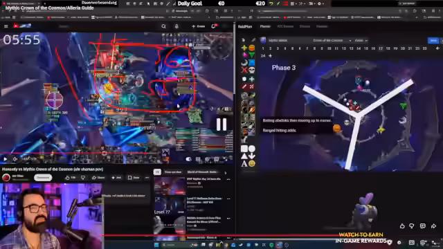 00:17:59Der Hauptfokus des Streams verschiebt sich zur Analyse des neuesten Raid-Progresses für den Boss Alleria Windrunner. Es wird ein externes Video eines Top-Spielers angesehen, um die Mechaniken, besonders die letzte Phase, zu verstehen. Die Analyse betrifft speziell die Koordination der Tanks und der Melees, die in bestimmten Phasen hohe Anforderungen an das Management von Tethern und Kreisen haben. Es werden verschiedene Strategien besprochen, wie man als Raidlead die Calls geben und die Gruppe durch den komplexen Kampf führen kann, um den Boss zu besiegen.