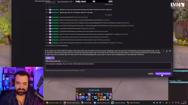 03:38:36Es beginnt eine Diskussion über einen kürzlichen Bann eines Community-Mitglieds namens Armin Akoid, wobei der Streamer die Entscheidung der Community in Frage stellt, ob der Bann gerechtfertigt war. Der Streamer betont die Schwierigkeit, Entscheidungen zu treffen, wenn es um Community-Mitglieder geht, die ständig Stress verursachen und dann die Opferrolle einnehmen. Er erklärt, dass er den Spieler entbannt hätte, aber sich der Community gebeugt hat. Es wird hervorgehoben, dass dieses Verhalten, Stress zu verursachen und sich dann als Opfer darzustellen, in der heutigen Gesellschaft oft zum Erfolg führt. Der Streamer äußert seine Frustration über solche Leute und betont, dass er keine Lust auf solche Verhaltensweisen hat. Er erklärt, dass er normalerweise solche Leute auch immer einfach bannen würde.