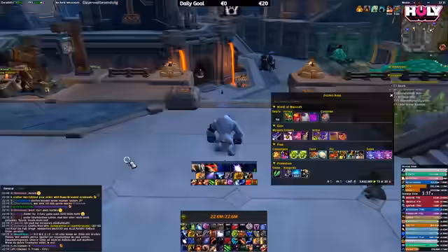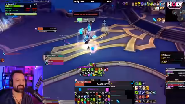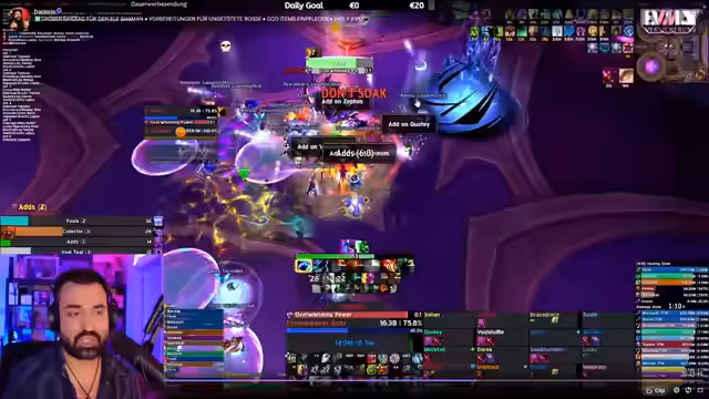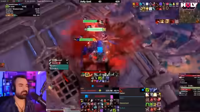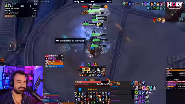 04:57:05Der Streamer startet einen Raid und stellt fest, dass er muscle memory technisch immer noch den Evoker spielen kann. Er bemerkt, dass ein anderer Spieler mit weniger Item Level mithalten kann, was er als Respekt verdient. Während des Raids stellt er fest, dass in Gruppe 6 keine Heilung ankommt, was er als bekanntes Problem im letzten Slot der vierten Gruppe in Mythic-Raids beschreibt. Er bedankt sich bei einem Zuschauer für das Raussuchen von Tricks und lobt die Sprüche, die heute wieder tief fliegen. Es gibt Probleme mit dem Tank, der sich falsch positioniert und die Leute rätzt. Der Streamer überlegt, ob er mit Mike reden soll, um die Crew zu bekochen. Abschließend wird über die Schwierigkeit diskutiert, mit Raidfight im Plus zu spielen, da es sich anders anfühlt als sonst.