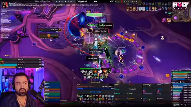 00:01:18Der Stream beginnt mit einer herzlichen Begrüßung zum Mythic Aras Guide. Es wird auf das UI des Streamers hingewiesen, welches über die Kanalbeschreibung auf der Homepage gefunden werden kann. Dort lassen sich einzelne Elemente oder das Gesamtpaket installieren. Für den Bosskampf selbst werden Markierungen gezeigt, die mit dem Northern Sky Wiegara-Paket genutzt werden können, ebenfalls verlinkt in der Beschreibung. Das Setup besteht aus circa vier Heilern, zwei Tanks und einer Mischung aus Ranges und DDs, wobei Shadows den Kampf durch Spreaded Cleave erleichtern können. Es wird betont, dass Heroik-Fähigkeiten verstanden sein müssen, da Fehler hier unverzeihlicher sind. Zu Beginn des Kampfes wird empfohlen, Bloodlust direkt beim Pull zu zünden, um den Schaden zu maximieren. Der Boss aktiviert InvoCollector, der Kollektoren aktiviert und Adds beschwört. Gegenüber dem aktiven Kollektor spawnt eine schwarze Fläche, und vier Spieler erhalten ein Ad, das sie ablegen müssen. Es wird von der alten Taktik abgeraten, die Ads in die schwarze Fläche zu knocken, da dies komplex ist und nur für sehr gute Spieler geeignet ist. Stattdessen wird empfohlen, die Ads hinter den Kreis zu locken, damit sie automatisch durch die Fläche laufen.