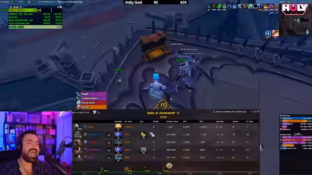 05:57:15Die Seite zeigt, wie viele Keys getreechested werden, was ein starker Indikator für die Schwierigkeit eines Keys ist. Die Seite wurde vom Wieg-Aura-Macher Jots gebaut. Die Seite ist crazy und enthält auch Routen, die aber etwas veraltet sind. Es wird über den höchsten Run eines Death Knights in Arakara und Brewmaster in Gambit diskutiert. Die Seite zeigt Dungeon Popularity across Key-Levels. Die Daten kommen von Radar.io oder VioW selber. Ab 19 wird es langsam auffällig, dass Flattgate gar nicht mehr vorkommt. Gambit ist der leichteste Key zum Three Chesten, gefolgt von Echo Dome. Es wird über Spec Popularity diskutiert und dass diese Übersicht auch auf Raider IO vorhanden ist. Es werden schnell zwei Kies gegeben, um bis 21 Uhr fertig zu sein. Es gibt etwas zum Snacken. Es werden Leute für eine Gruppe gesucht, darunter Tüppel Hunter, Trupp vs. Norville vs. Horse Butcher, Asiante mit Kirby, Mozart und Banoffi. Es wird über Feedback zum Hunter und die Pubertät von Oskar diskutiert. Es wird über den Geschmack eines veganen Proteinshakes gesprochen. Es wird über die Spielweise von Lina als Heiler diskutiert und dass die Pulls angepasst werden, da sie overwhelmed wirkt. Es gibt viele Hunter in der Community. Die Pulls werden als nicht so Sweaty empfunden und es wird erklärt, wie die Pulls angepasst werden, um den Damage Income predictable zu machen. Es wird sich bei Nina entschuldigt, da die Pulls für einen 12er zu crazy waren.
