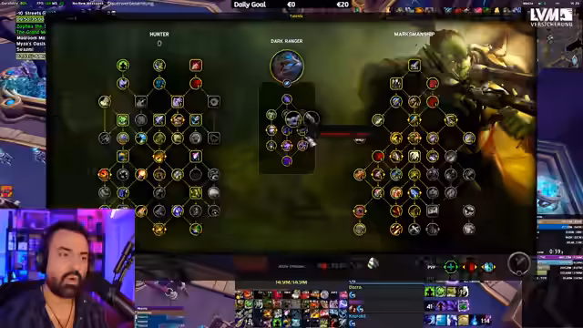 01:13:50Es beginnt eine detaillierte Auseinandersetzung mit dem Dark Ranger Hunter Build, wobei verschiedene Speccs und deren Eignung für M+ und andere Inhalte diskutiert werden. Ein schneller Sim wird durchgeführt und verschiedene Talentbäume auf Wowhead analysiert. Die aktuelle Formatierung der Talentbäume wird als nicht optimal kritisiert und ein alternatives Design vorgeschlagen, das an das Kombosystem von Final Fantasy erinnert, bei dem sich Tasten je nach Situation umwandeln. Es wird die Idee geäußert, dass alle Builds so aufgebaut sein sollten, mit einem Fokus auf aktive Zauber und passive Unterverwurzelungen. Die aktuelle Struktur des Hunter-Talentbaums wird als 'durchwurschtelt' bezeichnet, aber es wird anerkannt, dass er in gewisser Weise den Aim-Shot-, Explose-Shot- und Kill-Shot-Bereich abdeckt. Es wird bedauert, dass komplizierte Fragen zu WoW-Baustellen bei zukünftigen Einladungen nach London für Midnight Alpha aufgrund von Zensurbestimmungen nicht gestellt werden dürfen. Abschließend werden verschiedene Simulationen mit Sentinel- und Dark Ranger-Builds durchgeführt, wobei festgestellt wird, dass Dark Ranger in Cleave- und Single-Target-Situationen überlegen ist.