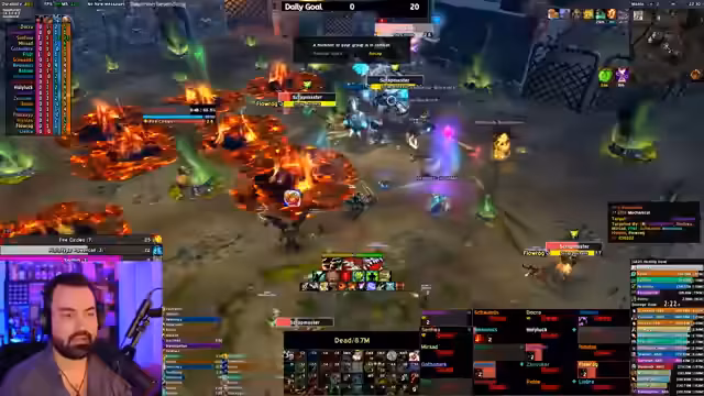 02:23:58Es kommt Frustration über den geringen Schaden auf, der ausgeteilt wird, insbesondere bei Adds. Der Streamer scherzt darüber, auf dem Niveau eines Heilers zu sein und droht, die Klasse an die Wand zu werfen. Fehler bei der Nutzung von Fire Blast werden eingeräumt, was auf mangelnde Haste zurückgeführt wird. Es wird über das Sparen von Armschienen und den Erhalt von Externets diskutiert. Ein neues Addon wird angekündigt, das bald veröffentlicht wird und Dispels und Kicks anzeigt. Der Streamer zeigt sich überrascht über den eigenen Overall-Damage und äußert sich zufrieden. Es werden die benötigten Items für die Ausrüstung genannt und der Erhalt eines Brustteils gefeiert. Die Umwandlung von Offset-Teilen in Set-Teile wird geplant, was zu einer deutlichen Verbesserung der Haste führt. Der Streamer kündigt an, sich einen Kaffee zu machen und fragt nach den Wünschen der Zuschauer bezüglich des weiteren Spielverlaufs.