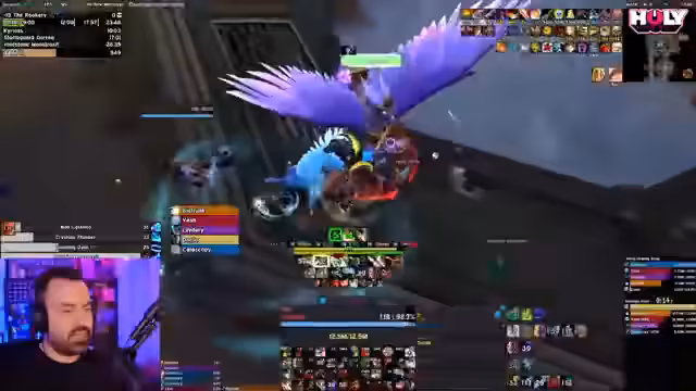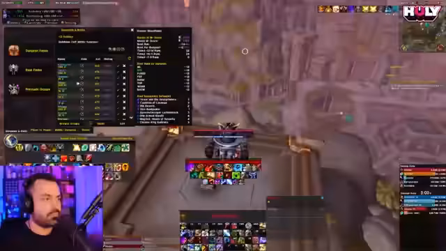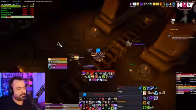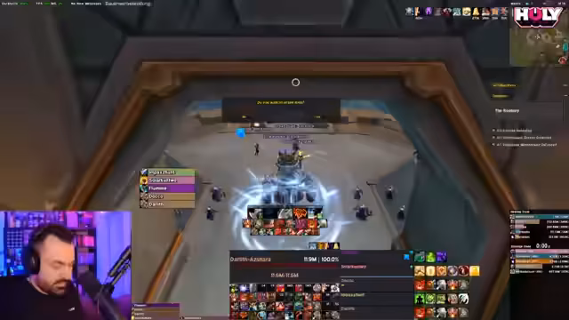 03:06:07Das Stream-Team bereitet sich auf einen schwierigeren Schlüssel vor. Die Charaktere wurden mit neuen Kopfverzauberungen undVault-Ausrüstung optimiert, und die Ausrüstung wurde aufgewertet. Es wird eine Schlüsselstufe von 12 für Rookery geplant. Der Streamer ist aufgeregt und erwähnt, dass er Itemlevel-bedingt im Nachteil sein könnte, aber die Gruppe bereit scheint. Es finden erste Tests im Bezug auf Pulls und Rotation statt.