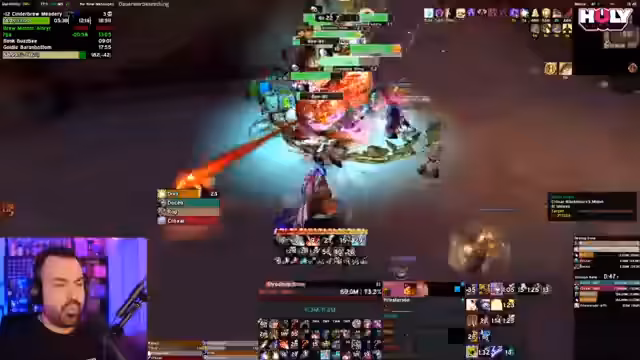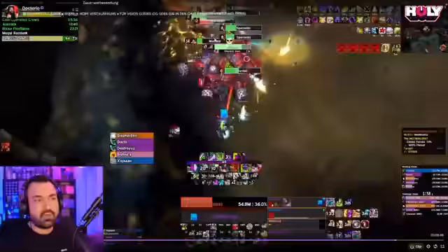 00:34:00Der Streamer berichtet über einen beendeten Dungeon-Run in World of Warcraft, der aus seiner Sicht sehr chaotisch war. Er beschreibt die Performance seiner Mitspieler als desaströs, insbesondere die des Tanks und des Heilers, die als überfordert eingestuft werden. Trotz des kritischen Verlaufs betont er, dass die Zuschauer, seine Guides anschauen, definitiv für höhere Schwierigkeitsgrade geeignet wären. Er kommentiert einzelne Entscheidungen im Kampf und kritisiert das Timing und das Positioning der Gruppe. Trotz der Frustration über den unterdurchschnittlichen Run, bewertet er den DK als positiven Ausnahme und hebt die Leistung des Bonica hervor, der als Puppe beschrieben wird und einen guten Schaden verursachte.