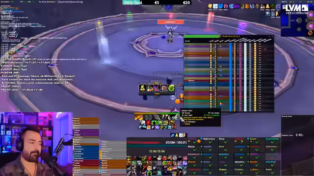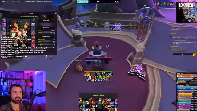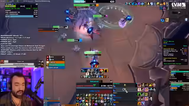 07:21:43Der Streamer analysiert den Mythic-Kampf gegen Dimensius, beginnend mit Phase 1, die er als einfacher einschätzt, obwohl sie nicht leicht ist. Er beschreibt die Mechaniken, wie das Aufnehmen der Kugel durch den Tank und die Unterschiede zu HC, wie die Anzahl der Adds und Frontals. Er betont die Bedeutung, zu wissen, wohin man muss, um nicht herunterzufallen, und die Notwendigkeit von Wegpunkten und externen Hilfen. In Phase 3 lobt er den sauberen Try und die Notwendigkeit, sich bei den Nova- und Ringmechaniken zu verteilen. Er erklärt, dass die Ringmechanik für die Heiler ein extremer Heal-Check ist. Er beschreibt die Strategie für die Devar-Mechanik und die Bedeutung von gutem Damage, um den Boss zu besiegen. Abschließend betont er, dass der Bosskampf sehr anspruchsvoll ist und perfekte Klassenbeherrschung erfordert.