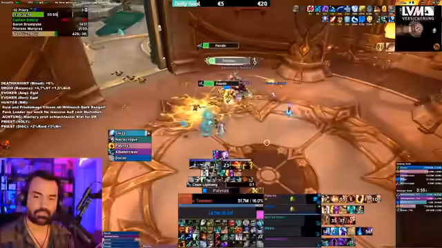 09:14:54Es wird ein Guide zum Paladin-Heilen in Mythisch-Plus-Dungeons (M+) mit dem Herald of the Sun Build gegeben. Der Streamer empfiehlt, Dawn of Light, Flash of Light und Holy Light aus der Aktionsleiste zu entfernen, um sich von traditionellen Heilmethoden zu lösen und den Fokus auf andere Fähigkeiten zu legen. Stattdessen soll man sich auf Holy Shock konzentrieren und diesen offensiv und defensiv einsetzen. Für Spot-Heilung sollen Holy Shocks in Kombination mit Word of Glory verwendet werden. Bei Heilungs-Checks sollen CDs wie Holy Prism und Beacon of Virtue eingesetzt werden. Der Streamer betont, dass Flash of Light und Holy Light in diesem Build nur selten verwendet werden sollen. Er erklärt, dass viele Paladine noch von alten Spielweisen beeinflusst sind und diese neuen Ansätze lernen müssen, um das volle Potenzial des Herald of the Sun Builds auszuschöpfen.
