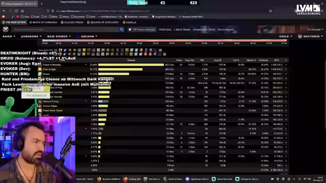01:49:28Es wird das Loot-System in WoW erklärt, insbesondere wie das Töten eines Bosses den Loot für alle darunterliegenden Bosse freischaltet, unabhängig davon, ob diese später erneut getötet werden. Der Streamer kündigt einen Raid auf Dimensius um 19 Uhr an und erklärt, dass danach auch bei nur wenigen getöteten Bossen der komplette Loot verfügbar sein kann. Es wird über die Balance zwischen verschiedenen Klassen und Speccs diskutiert. Der Streamer betont, dass es wichtig ist, nicht nur die Klasse, sondern auch den jeweiligen Specc und das Hero-Talent zu berücksichtigen, da diese sich stark voneinander unterscheiden können. Es wird kritisiert, dass Blizzard es den Spielern zu kompliziert macht, indem sie zu viele unterschiedliche Builds und Talente anbieten. Der Streamer lobt die aktuelle Season für ihre Balance und die Vielfalt an viable Hero-Talenten. Er erklärt seine 'Geheimformel' für ein erfolgreiches MMO, die auf der Unterscheidung zwischen Single-Target- und AOE-Builds basiert. Zusätzlich schlägt er vor, Crit vs. Non-Crit und Physical vs. Magical Damage als weitere Unterscheidungsmerkmale einzuführen.