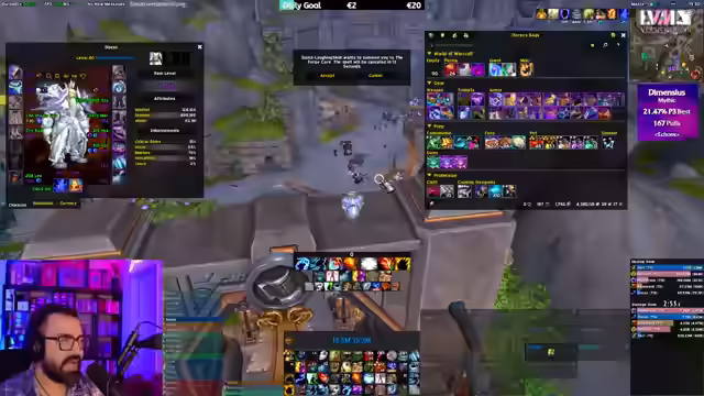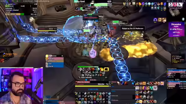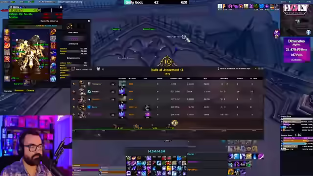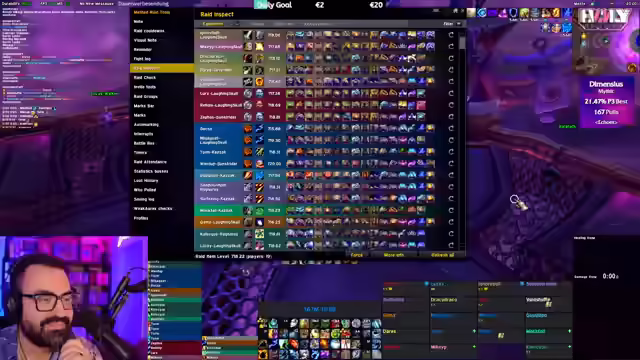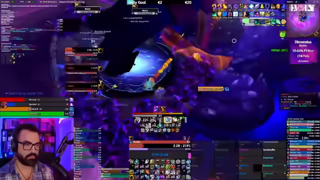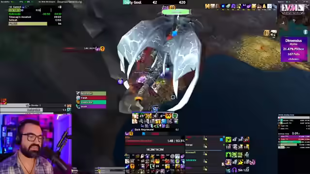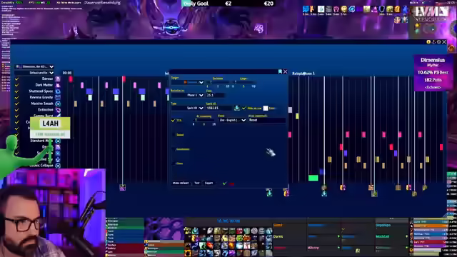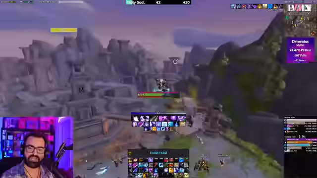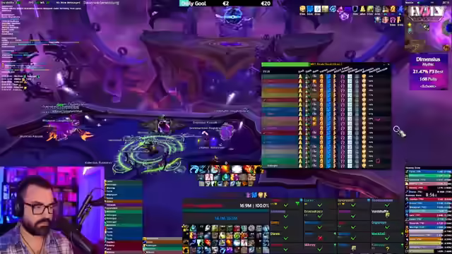 Der WoW-Stream startet mit Diskussionen über Mythic Runs und UI-Anpassungen. Es folgen Analysen zur Item-Level-Skalierung und eine Einschätzung der geringen Wahrscheinlichkeit, Dimensius zu besiegen. Der Fokus wechselt zu Dungeon-Runs mit Zuschauern, wobei Skillungen, Club KitKat und Taktiken besprochen werden. Abschließend Analyse von Fehlern und Anpassung der Taktik.