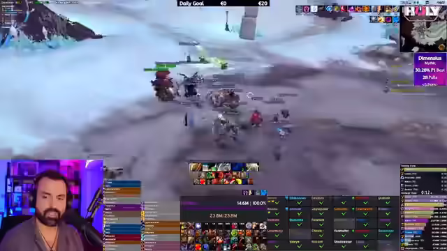 03:08:59Es wird über das Verhalten von Spielern diskutiert, die sich zusammen gecued haben, und es werden humorvolle Beleidigungen ausgesprochen. Es wird klargestellt, dass Legion Remix nichts mit Panda Remix zu tun hat. Es werden taktische Anweisungen gegeben, wann man ziehen soll, um Fehler zu vermeiden. Die Bedeutung von Antennen wird hervorgehoben. Die Größe des DCO wird als ziemlich fett beschrieben, aber nicht als das größte, was sie je hatten. Es wird erwähnt, dass sie in Season 2 sieben Chars 4er Mythic plus alle anderen 8er Dungeon Mythic hatten. Es wird überlegt, ob das frühe Erreichen der Hall of Fame das letzte Drittel von CBW dead macht. Es wird erklärt, wie man runterspringt und die Portale freischaltet. Die Tür ist offen und es wird darauf hingewiesen, dass man nicht laufen soll, sondern sterben und das Portal nutzen soll. Es wird spekuliert, dass das schnellere Erreichen des Race damit zu tun hat, dass sie schneller mit dem Race fertig waren.