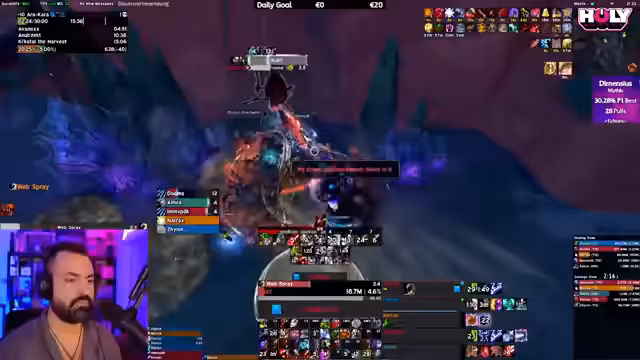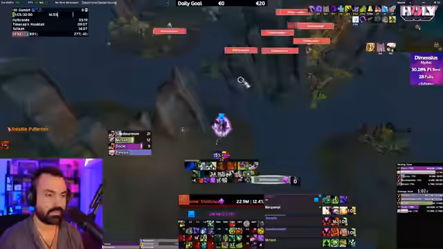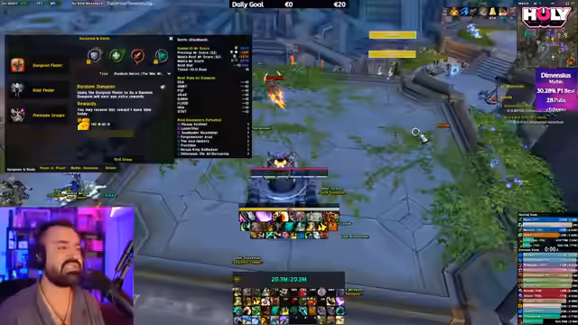 02:43:13Zu Beginn des Streams läuft der Streamer einen Mythic Dungeon Plus (M+). Er bittet im Chat um Meldungen von Spielern, um eine vollständige Gruppe zusammenzustellen. Es wird diskutiert, dass die Gruppe bereits fünf Heiler hat, was als Overkill angesehen wird. Der Streamer merkt sich die Namen der Spieler, um sie zu kennen, und stellt fest, dass es viele Wiederholungen gibt. Die Gruppe wird schrittweise zusammengestellt, während er nach dem höchsten Item-Level fragt, um die Gruppe zu optimieren.