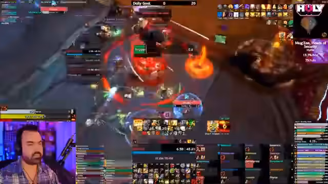 06:20:35Im finalen Versuch wird der Boss erfolgreich getötet. Der Streamer führt die Gruppe durch die letzten Phasen, gibt präzise Calls für Ausweichen, Positionieren und den Einsatz von defensiven Fähigkeiten. Es kommt zu einem intensiven Tausch von Heilung und Cooldowns, um die letzten 10% zu überstehen. Nach dem erfolgreichen Kill feiert das Team den Sieg und der Streamer gratuliert den Teilnehmern im Chat.