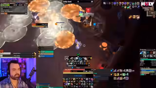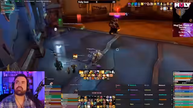 02:56:00Der Stream zeigte den eigentlichen Schlachtzugversuch gegen Gallywix. Der Streamer agierte als Anführer und Koordinator, der den Timer gab, Markierungen verteile und den Fokus der Gruppe lenkte. Mehrere Mechaniken wie 'Fingers', 'Prisons' und 'Baited Mines' wurden strategisch ausgeführt. Trotz anfänglicher Probleme, wie versehentlich ausgelöste Minen, wurde ein erfolgreicher Wipe verhindert und der Kampf wurde fortgesetzt. Der Streamer legte besonderen Wert auf klare Kommunikation und das Festhalten an der vereinbarten Taktik.