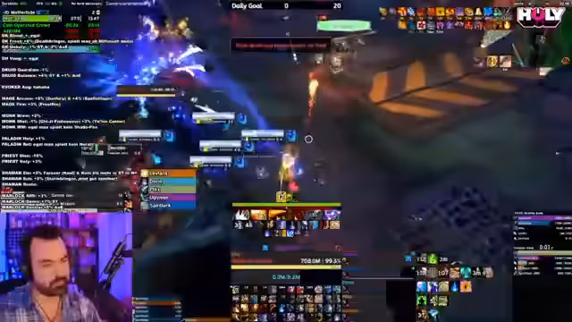 00:07:07Die finale Gruppe besteht aus Holy Paladin, Holy Priest und Fire Mage. Es wird die strategische Entscheidung getroffen, auf die Heilungs-Talent-Variante 'Virtue' zu verzichten, um Manaprobleme zu vermeiden und 'Beacon of Faith' zu priorisieren. Der Streamer plant, die neuen Talente mit 'Tears of the Vigilant' und 'Delirium' zu testen, um die maximalen Schadenswerte zu erzielen und sich auf anstehende Meta-Änderungen vorzubereiten.