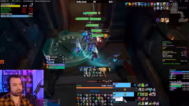 01:53:03Es wird ein Heiler für den Motherload Dungeon gefunden, und die Gruppe startet den Dungeon. Der Streamer erklärt, dass nach dem Key Gallywix zweimal hintereinander gespielt wird und ermutigt die Zuschauer, sich anzumelden. Er stellt 50.000 Gold für die Zuschauer bereit und verweist auf seine Homepage für Add-on-Links. Während des Dungeons gibt der Streamer Anweisungen und erklärt die Taktiken. Er konzentriert sich darauf, den Demon Hunter zu spielen und den Flow zu lernen. Es wird erwähnt, dass der Streamer zu wenig Haste hat und dies im Gameplay spürbar ist. Er erklärt, dass er gestern Doide Tank gespielt hat und dass dieser in der aktuellen Season sehr stark ist. Der Streamer gibt Tipps und erklärt die Mechaniken des aktuellen Bosses. Er erklärt, dass der Boss Ads beschwört, die verstärkt werden müssen, und dass man den Boss fokussieren soll. Es wird erklärt, dass man bis 2 zählen können muss, um den Boss zu besiegen. Abschließend wird der Dungeon erfolgreich abgeschlossen und der Streamer loggt sich um, um den Gallywix Raid vorzubereiten.