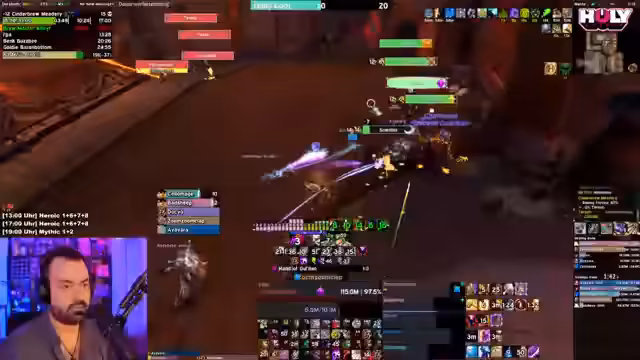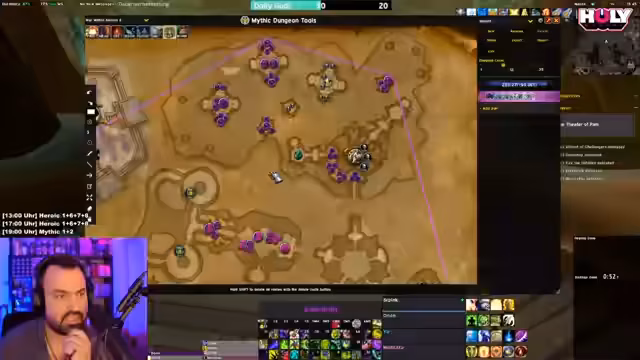 10:35:05Der Streamer beginnt einen Mythic+ Dungeon, wobei er betont, dass seine Guides unumgänglich sind, um die Mechaniken der Bosse zu verstehen, und dass es sich um professionelle Inhalte handelt. Die Gruppe kämpft sich durch die Instanz, wobei er ständig Anweisungen gibt, wie z.B. die Bomben zu ködern und die Toys zu spielen. Nach einem erfolgreichen Run und einem verlorenen Teammitglied startet er sofort mit der Planung für den nächsten Dungeon.