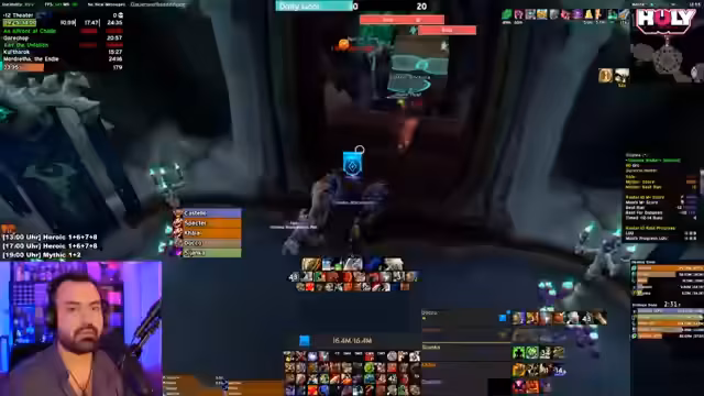 06:50:38Aufgrund von Problemen in der vorherigen Gruppe, insbesondere einem Heiler, der nicht gehalten hat, wird die Suche nach einer neuen Gruppe für einen High-Key fortgesetzt. Der Streamer sucht gezielt nach erfahrenen Spielern für einen 15er Key in Dungeons wie Priory, Workshop oder TOP. Es werden spezifische Rollen benötigt, insbesondere ein starker Heiler und ein Spieler mit Disrupt-Fähigkeiten. Der Prozess des Findens einer passenden Gruppe wird als zeitaufwendig und manchmal frustrierend beschrieben, da die Leistung von Spielern stark variieren kann.