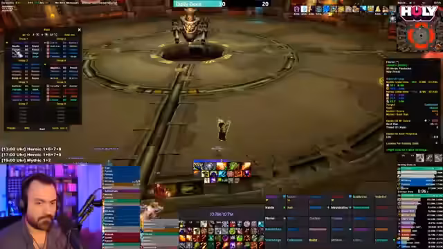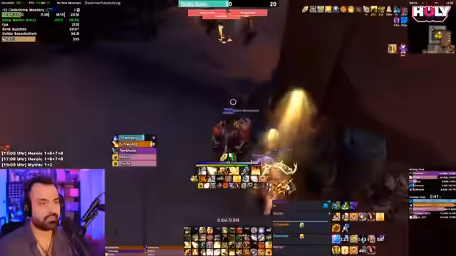 05:15:05Zu Beginn des Raids wird eine volle Gruppe zusammengestellt und eine Abstimmung über die gewünschte Spekulation des Streamers eingeleitet. Der Streamer fragt, ob er als Destro oder Affli Warlock spielen soll, wobei der Chat sich倾向于 Destro entscheidet. Der Streamer gibt an, dass er diese Season noch nie Affli gespielt hat und auch in der vorherigen Saison nicht, was auf eine lange Abstinenz von dieser Spez hinweist. Er findet keine gute Affli-Spekulation auf einer Webseite und erstellt eine eigene unter Zuhilfenahme eines Hotkeys. Der Streamer nennt den Blood Horror als Talent und ist kurzzeitig von der Wahl des Soul Harvester verunsichert.