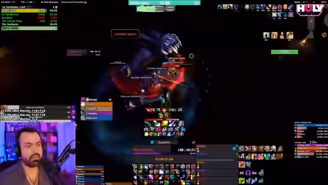 05:49:45In der Endphase des Bosskampfs ist die Koordination zwischen den Heilern und DPS entscheidend. Der Streamer fordert die Heiler und DPS auf, alle defensiven und offensiven Fähigkeiten einzusetzen, um die letzten Phasen zu überstehen. Es werden die Mechaniken der drei Kreise erwähnt, die ein Dreieck bilden, und die Spieler müssen ausweichen oder Bomben tragen. Der Streamer betont, dass der Fokus auf dem Boss-Damage liegen soll, nachdem die Bomben nach hinten getragen wurden. Er kritisiert, dass ein Add namens 'Jester' vergessen wurde, aber erklärt, dass dies das Ergebnis eines hektischen Raids sei.