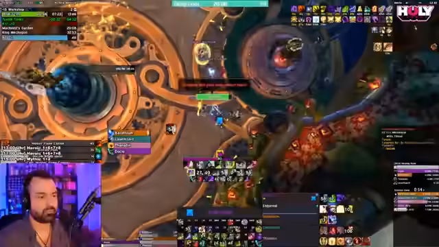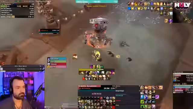 14:35:55Ein Hunter steht im Zentrum der Kritik, da er grundlegende Mechaniken nicht beherrscht und durch falsches Verhalten den Key gefährdet. Seine Fehler, wie das Ignorieren von Boss-Abilities, werden als inakzeptabel für einen 15er Key angesehen. Nach dieser intensiven Diskussion beginnt man einen neuen, etwas einfacheren 12er Key. Der Streamer bittet die Mitspieler, die Grundlagen zu verstehen und sich an der besprochenen Taktik zu orientieren, um den positiven Verlauf des neuen Schlüssels sicherzustellen.