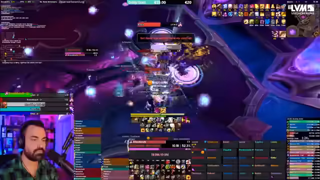 05:33:57Der Streamer überprüft die Verzauberungen der Ausrüstung seiner Mitspieler und fordert sie auf, fehlende Verzauberungen zu ergänzen. Er bestätigt, dass der Mythic-Raid bereit ist und fragt, ob die ID für einen weiteren Run genutzt wird, was verneint wird. Der Streamer erklärt einen Fehler seinerseits, der zu einem Wipe führte, und gibt Anweisungen für die nächste Runde. Er gibt Anweisungen zur Positionierung und zum Umgang mit verschiedenen Mechaniken des Bosskampfes, einschließlich Pools, Soaks und Knockbacks. Es wird betont, dass die Spieler auf ihre Füße achten und Dev-CDs rechtzeitig einsetzen sollen. Nach einem weiteren Wipe aufgrund eines Fehlers gibt der Streamer weitere Anweisungen und erklärt die Strategie für die Orbs und Knockbacks. Er betont die Bedeutung des Spotten des Bosses und der korrekten Positionierung der Adds. Der Streamer lobt die Gruppe für ihren ersten Versuch und gibt Anweisungen für den nächsten Pull, wobei er die Bedeutung von Damage und Ablenkung reduziert.