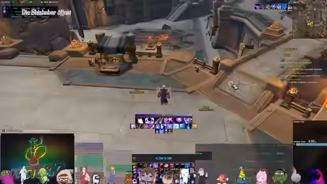 02:48:39Der Streamer plant, Dungeon Guides zu erstellen und fragt den Chat nach Vorschlägen, welche Dungeons noch fehlen. Zur Auswahl stehen Workshop (Werkstatt), Darkflame Cleft (Dunkelflammenschlucht/Spalt), Theatropenias (Theater der Schmerzen) und Motherload (Mutterlade/Riesenflötz). Der Chat stimmt mehrheitlich für Workshop. Der Streamer bereitet die Grafik für den Workshop-Guide vor und sucht nach einem passenden Key. Er kündigt an, kurz pinkeln zu gehen und bittet den Chat, ihn daran zu erinnern, danach wieder etwas zu trinken. Der Streamer nimmt Zuschauer in die Gruppe für den Workshop-Key auf und bemerkt eine Farbänderung bei den Key-Anzeigen, die auf ein Problem mit RaiderIO zurückzuführen ist. Er behebt das Problem und nimmt weitere Zuschauer in die Gruppe auf.