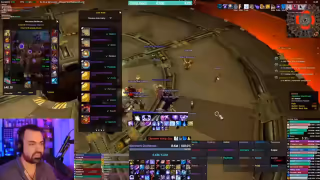 02:36:20Der Streamer behebt technische Probleme mit seiner Kamera und bereitet sich auf den Raid vor. Er teilt die Gruppen auf und gibt Anweisungen für den Kampf. Der Streamer hat Schwierigkeiten mit seinem Makro und macht Fehler im Kampf. Trotzdem gewinnt die Gruppe und ein Auge droppt. Der Streamer kommentiert seinen eigenen Loot-Luck und die Verteilung der Items an die Mitspieler. Er freut sich, dass Leute die Items bekommen, die sie brauchen. Der Streamer kündigt das Ende der Raids an und kommentiert die Anzahl der Augen, die in den letzten Runs gedroppt sind. Er analysiert seinen eigenen Schaden und stellt fest, dass Arkan spielbar ist, obwohl er Fehler gemacht hat. Der Streamer ändert sein Makro und spricht über MM. Er kündigt an, dass er jetzt M+-Farmbands machen wird und bereitet sich mit einem Koffein-Getränk darauf vor.