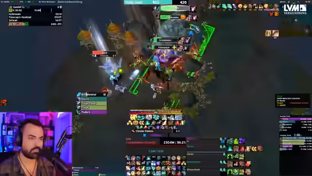 06:56:20Der Streamer wechselt das Thema und startet die Rekrutierung für einen 'Echo-Dome' Key, einem speziellen Dungeon in World of Warcraft. Er sucht gezielt zwei 'dicke, fette DDs' (Damage Dealer) für einen elitären Lauf, wobei er betont, dass alle Mobs schneller auszurotten sind und der Schwierigkeitsgrad gestiegen ist. Gleichzeitig wird eine fortlaufende Diskussion über Guides, UI-Anpassungen und die Zusammenstellung des optimalen Teams geführt, um schnell und effizient den Erfolg zu erzielen.