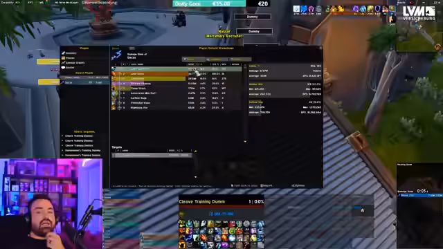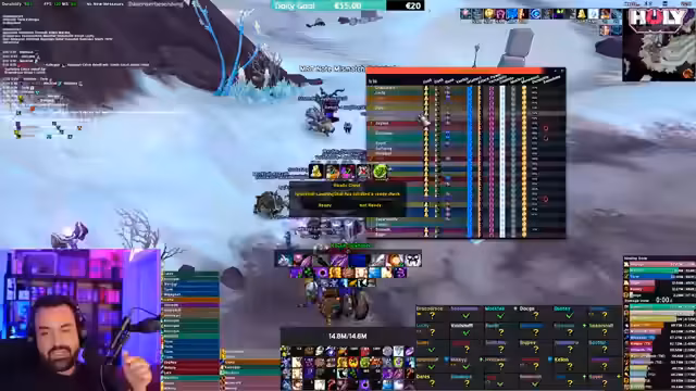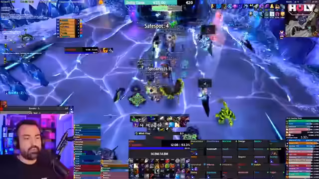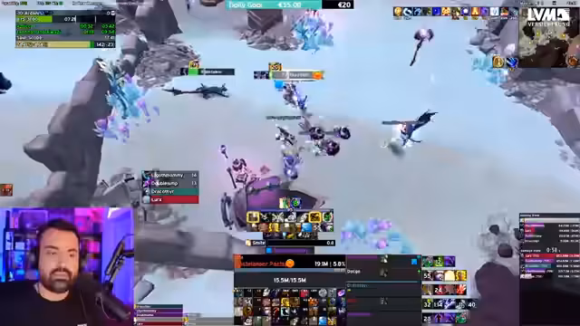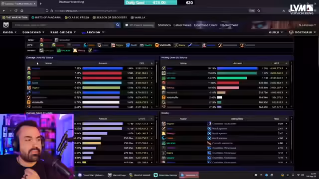 05:02:09Es wird ein 98er-Log kommentiert und festgestellt, dass das Gear nicht optimal ist. Es wird vermutet, dass der Streamer sich kurz aus Testzwecken woanders angemeldet hat. In Hall of Fame-Gilden sind 99er-Logs bei Mythic Raidern normal. Es wird erklärt, was Logs bedeuten: 100 ist perfekt, 99 fast perfekt. Item-Level-Anzeigen machten vor Tearsets mehr Sinn, da Heroic Track Trinkets besser sein können als Mythic Track Trinkets. Mechaniken, Uptime, Kill-Zeit, Externals und Gruppen-Buffs werden bei der Log-Bewertung nicht berücksichtigt. Hohes Item-Level ohne Set-Bonus wird nicht berücksichtigt. Der Streamer erklärt, dass er Krieg mit zehn Leuten erklärt und entschuldigt sich für sein Verhalten. Es wird festgestellt, dass Lucky nicht für die späteren Bosse dabei ist. Der Streamer ist kein guter Platformer. Es wird über Corona und russische Labore gewitzelt. Die UI explodiert und LVI wird deaktiviert. Der Streamer findet es nicht zu retten, nur DPS zu sein und verweist auf den Damage Meter. Details und Logs sind nicht immer gleich, da Details Augmentation zählen. Lucky bufft den Streamer mit PI. Der Streamer entschuldigt sich für eine Sache und sagt, er habe etwas zu sagen.