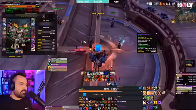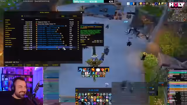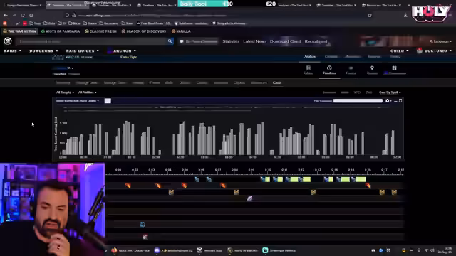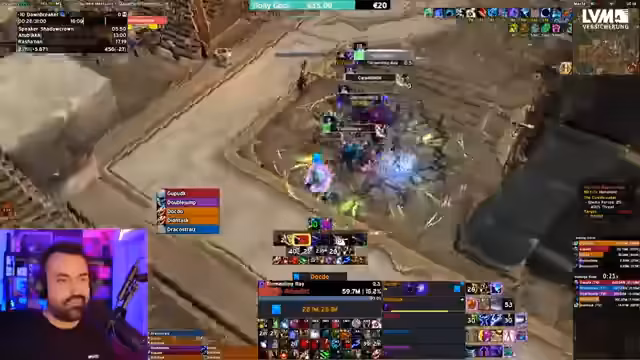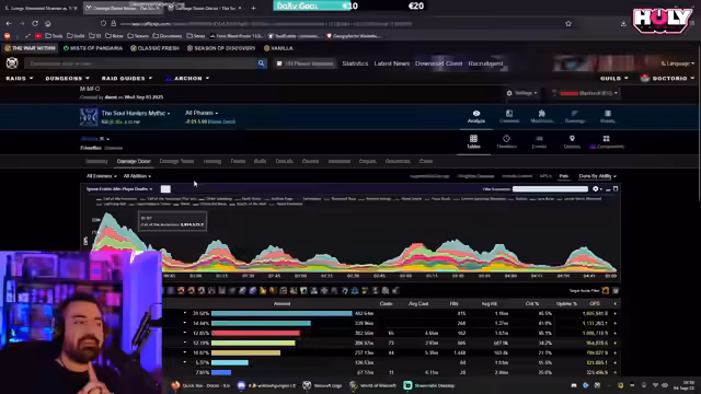 Doctorio optimiert in World of Warcraft Charaktere, verwaltet Loot und kämpft mit Internetproblemen. Es folgen Diskussionen über Goldpreise, Skillungen und Mana-Management. Der Streamer analysiert Opener-Strategien, gibt Taktiken für Dungeons und Raids und teilt sogar sein Rezept für Linsensuppe. Im Fokus stehen Item-Optimierung, Raid-Fortschritt und die Analyse von Logs.