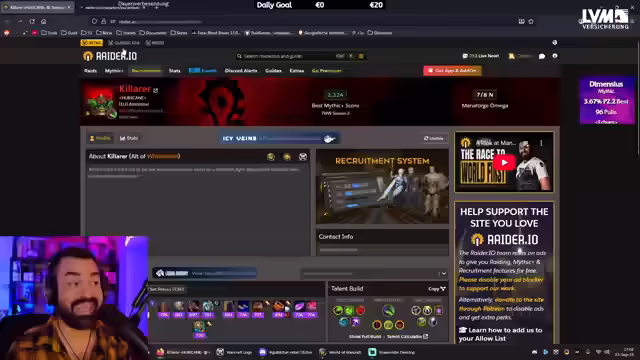 02:49:54Es wird über Tipps diskutiert, wie man schneller in Plus-Gruppen findet. Ein Zuschauer namens Chaoskiller fragt, warum er mit Itemlevel 700 und 2200 Rio keine Gruppen findet. Der Streamer möchte solchen Leuten helfen, die kurz davor sind, WoW zu verlassen, weil sie keinen Anschluss finden. Er analysiert Chaoskillers Raider.io-Profil und stellt fest, dass die Pflege seines Charakters außergewöhnlich gut ist. Er gibt Tipps zu Verzauberungen und Sockeln, betont aber, dass die Pflege des Charakters bereits sehr gut ist. Der Streamer erklärt, dass Chaoskiller mit seinem aktuellen Rio-Wert und Itemlevel keine Gruppen finden wird und dass er daran arbeiten muss, seinen Main zu verbessern. Er lobt Chaoskiller für seine Bemühungen, seinen Charakter zu verbessern und gibt ihm konstruktives Feedback.