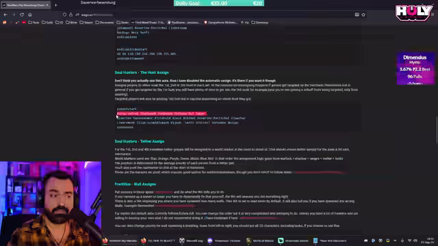 01:25:17Es wird erklärt, warum manche Spieler keine Notizen bei der Dungeon-Anmeldung hinterlassen können, was oft an der Nutzung von Add-ons liegt, die automatische Anmeldungen ermöglichen. Es werden mögliche Lösungen aufgezeigt, wie man trotz Add-on eine Notiz verfassen kann, z.B. durch das Gedrückthalten von Shift, Steuerung oder Alt während der Anmeldung. Es wird eine Dungeon-Taktik erläutert, bei der bestimmte Adds nicht gepullt werden müssen, da bereits ausreichend Mob-Count vorhanden ist. Es wird angekündigt, dass der Mythic-Raid um 20 Uhr fortgesetzt wird. Es wird die Frage beantwortet, ob der Streamer vorhat, Keys zu pushen, aber auch die Undankbarkeit dieser Aufgabe in seiner Situation erwähnt. Abschließend wird die Bedeutung der richtigen Positionierung und des Buff-Extendings in Ecodome erklärt, wobei auf einen Guide des Streamers verwiesen wird. Die Gruppe wird für ihre Leistung gelobt und es wird ein kurzer Kommentar zu Transmogs gemacht.