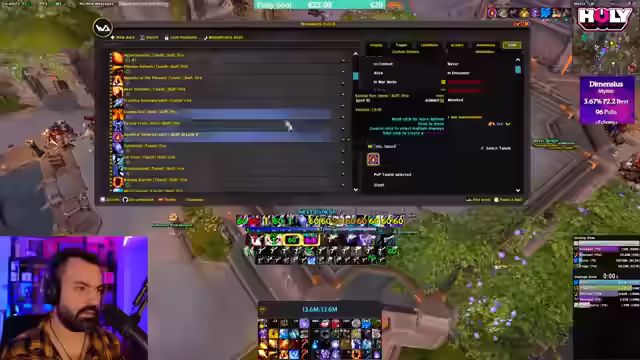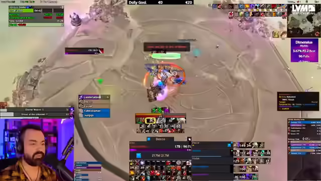 02:41:52Ein Dimensius-Boost von einer russischen Gilde wird thematisiert, wobei ein Unholy Death Knight die Warcraft Logs "fickt". Es wird erklärt, dass dies durch einen Käufer verursacht wurde, der den Bosskampf manipuliert hat. Der Streamer erklärt, dass er in seiner Vengeance Demon Hunter Weak Aura die Spells mit denselben Icons wie in ihrer Naturform versieht, um Anfängern das Erlernen zu erleichtern. Er überlegt, welcher seiner 39 Specs aktuell der schwächste ist und kommt zu dem Schluss, dass es möglicherweise Havoc ist. Er zieht in Erwägung, Havoc in dieser Season noch einmal zu spielen, um wieder reinzukommen. Er vergleicht Havoc mit anderen Specs und stellt fest, dass viele andere Specs relativ einfach zu spielen sind oder sich im Laufe der Zeit nicht wesentlich verändert haben. Der Streamer hat plötzlich Lust, Havoc zu lernen und überlegt, sich Videos anzusehen, um schneller damit zurechtzukommen.