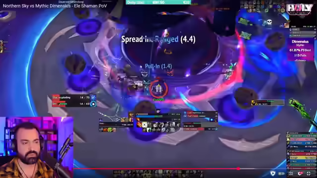 04:29:01Es wird die Vorbereitung auf den Mythic-Kampf gegen Dimensius besprochen, insbesondere die Strategie für die erste Ring-Mechanik und die Einteilung der Spieler. Der letzte Ring wird immer als Stern markiert, und der Raid soll geschlossen zum ersten Ring laufen. Es wird die persönliche Einteilung in Vierergruppen und die Positionierung relativ zur Mitte, wo gebetet wird, erläutert. Die Laufrichtung (links oder rechts) wird festgelegt, wobei der Tank darauf achten muss, Spieler, die rechts laufen, zu berücksichtigen. Es wird betont, dass die Position nach der Explosion wichtig ist und dass man bis vier zählen muss, um im ersten Stern zu sein. Es wird ein Protokoll im Kopf programmiert, um die Mechaniken automatisch abspielen zu können. Wichtig ist, nach den Ringen den linkesten Punkt von der Mitte aus einzunehmen und sich entsprechend auszurichten. Wenn man gezogen wird, soll man zum Tank laufen; der Mittlere bleibt stehen, während sich die Nahkämpfer entfernen. Die Position ist auf der rechtesten Seite nach dem Divorce. Es wird empfohlen, nicht auf 100% Uptime zu bestehen und lieber zwei, drei GCDs zu verschwenden oder einen Cast zu unterbrechen. Ice Fury kann genutzt werden, um Uptime zu generieren. Heal-CDs sind wichtig, da es an dieser Stelle reinknallt. Es wird empfohlen, alle Def-CDs und Erd-Elementare zu kopieren und für den Notfall einen Health-Bot bereitzuhalten. Das übertriebene Üben der Mechaniken soll sicherstellen, dass sie in der Muscle Memory verankert sind, um sich auf den Durchsatz konzentrieren zu können.