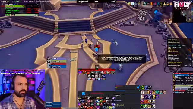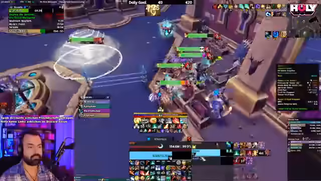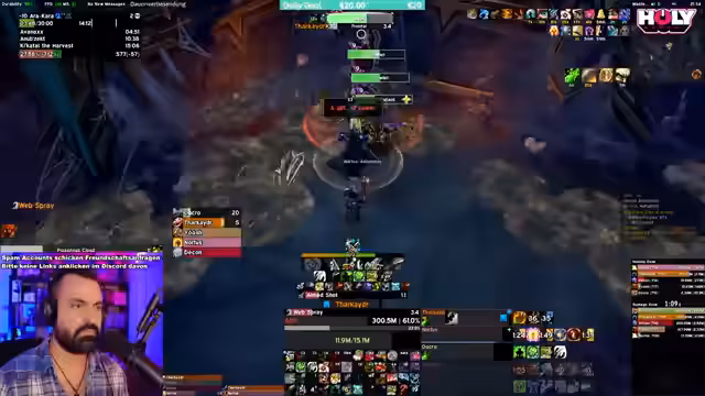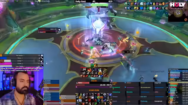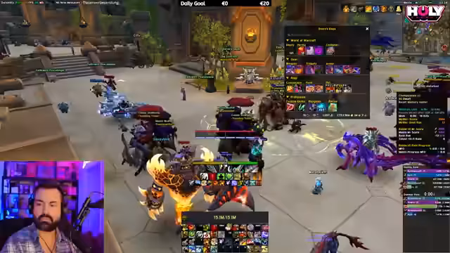 05:56:23Der Mythic Raid beginnt mit einer klaren Kommunikation und Einteilung der Rollen. Erster Boss ist Rookery, bei dem die Gruppe auf Mechaniken wie Farbsysteme und Web-Strände achten muss. Die Taktik wird live kommentiert, als der Streamer Calls gibt. Die Gruppe scheint den ersten Boss erfolgreich zu besiegen, wobei besondere Aufmerksamkeit auf das Management von gefährlichen Flächen und das Timing von Fähigkeiten gelegt wird. Es gibt kleine Fehler, aber der erste Sieg wird erreicht.