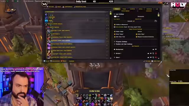 10:13:20Der Streamer arbeitet an der finalen Anpassung seiner Weak Auras für Sub-Rogue und implementiert spezifische Trigger für Shadowcraft Symbols und Secret Techniques. Er erklärt die Bedingungen, unter denen die verschiedenen Fähigkeiten aktiviert werden sollten: Symbols of Death oder Shadow Dance müssen aktiv sein, und bestimmte Stacks müssen vorhanden sein. Er entfernt unnötige Elemente aus der Weak Aura wie Fistility und Shot in the Dark, um die Übersichtlichkeit zu verbessern. Nach Abschluss der Anpassungen zeigt er die fertige Weak Aura und erklärt ihre Funktionsweise im Detail, inklusive der richtigen Anzeige von Secret Techniques für verschiedene Builds und Spielstiele.