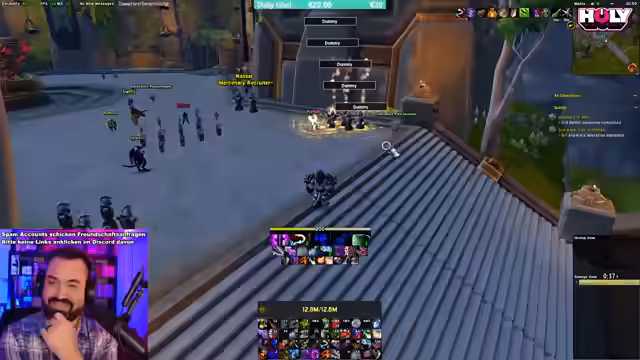 08:46:53Der Streamer kommentiert die Leistung seiner Gruppe, die bestimmte Mobs mit 10 Stacks immun ist, und beschreibt seine eigenen Fehler beim Pullen. Er beschwert sich über technische Probleme im Spiel und die fehlenden Trinkets, die seinen Schaden reduzieren. Trotzdem ist der Damage akzeptabel, und er ist zuversichtlich, dass er mit besserer Ausrüstung wie Lilly und einem Ring noch weiter verbessern kann. Die Gruppe entscheidet, noch einen Dungeon als Holy Paladin zu spielen.