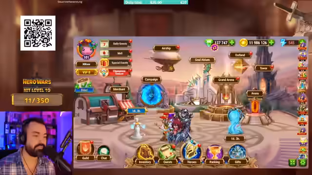 05:03:51Der Streamer beschreibt die verschiedenen Spielmodi in Hero Wars: Kampagnen, Outland mit starken Gegnern, einen zu erklimmenden Turm sowie eine Arena für PvP-Kämpfe. Er ist mit Platz 416 weltweit in der Arena bereits gut platziert, aber für weiteres Fortschritt benötigt er bessere Ausrüstung für seine Helden. Das Spiel kann sowohl im Browser als auch auf dem Handy gespielt werden, was Flexibilität bietet. Der Streamer beschließt, eine Hero Wars Kampagne zu unterbrechen, um stattdessen Raids zu spielen.
