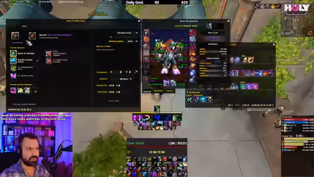 09:02:22Nach technischen Problemen entscheidet sich der Streamer, als Holy Paladin zu spielen. Er beschreibt die Herausforderungen des Heiler-Rolles, insbesondere mit der Beacon of Virtue-Fähigkeit, die gut für Heilung, aber schlecht für Mana und Damage ist. Er zeigt Freude über die Rückkehr seines Soundsystems und kommentiert die langfristige Wertigkeit von XP-Farming in WoW. Er erwähnt seine Erfahrung mit verschiedenen Klassen und wie sie von Season zu Season anhalten. Die Gruppe beschließt, einen 10er Gambit als nächstes zu spielen.