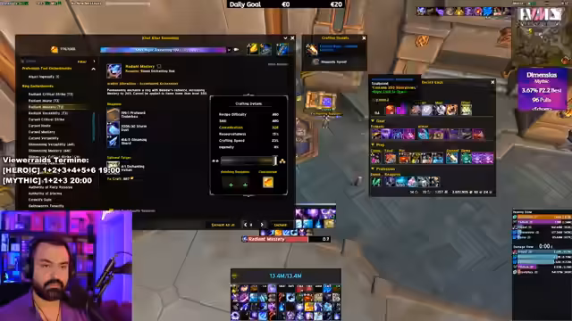 In World of Warcraft werden Dungeon-Gruppen zusammengestellt und Raid-Termine verschoben. Es geht um Item-Optimierung, neue Taktiken und die Analyse der Performance in Dungeons. Diskussionen über beste Trinkets, das Craften von Items und die Kosten für Verbesserungen. Strategieanpassungen während Bosskämpfen und die Bedeutung der Farbverteilung im Raid werden thematisiert. Alpha-Content und Community-Interaktionen runden das Geschehen ab.