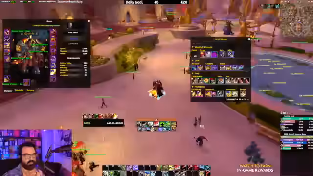 09:33:33Der Streamer schaltet spontan vom Raid zu einem Dungeon-Trip um, begleitet von mehreren Mitgliedern der Community. Als Tank zeigt er Warrior-Spielweise im Dungeon, reflektet Zauber von Monstern für extrem hohen Schaden und demonstriert strategische Entscheidungen, wie z.B. die Priorisierung von bestimmten Mobs. Der Fokus liegt auf einem lockeren, unterhaltsamen Spiel, während gleichzeitig die spezifischen Rollen von Warrior-Tanks und -DPS im Bezug auf reflektierbare Zauber erklärt werden.