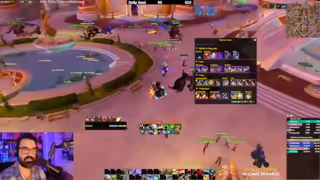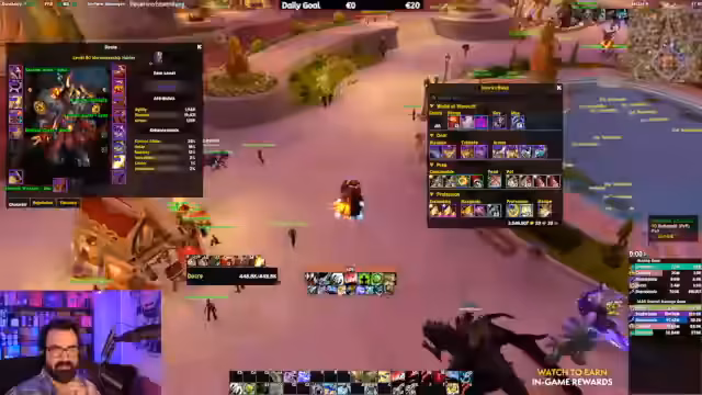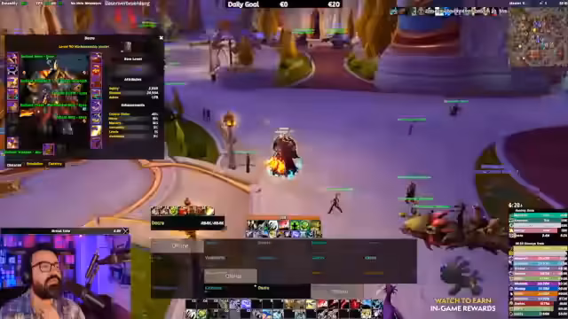 05:06:41In der Vorbereitung für den Raid um 20 Uhr wird ein schneller 8er-Dungeon geplant, um ein Upgrade zu erhalten. Der Streamer fragt im Chat nach einem Partner für einen Zweier-Dungeon, bietet Gier an und plant, eine Karte zu springen. Es werden die benötigten Gegenstände wie eine Curiosity und ein Bountiful Chest gesichert. Auch die wöchentlichen Quests und der Renown-Stand sind Teil der Vorbereitung, um maximal profitabel in den Raid zu starten.