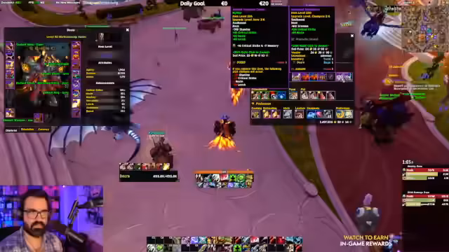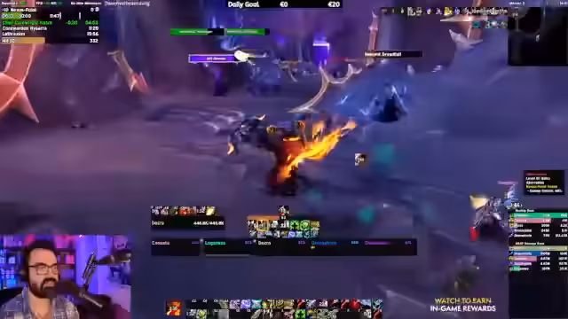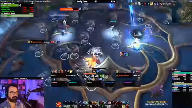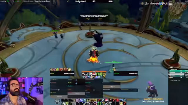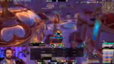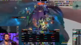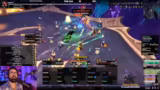 07:46:56Es wird eine spezifische Mechanik der dritten Boss-Begegnung im Skyreach-Dungeon erörtert, bei der ein Bug durch herumlaufende Pets eines Warlocks einen heiligen Kreis kurzzeitig verschwinden lässt. Der Streamer beschreibt die Situation, in der er den Kreis nicht erreicht, weil das Pet ihn durchläuft, und die anschließende Verwirrung. Er fasst es als typisches Problem mit Warlock-Pets zusammen und bezeichnet es als Bug.